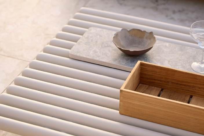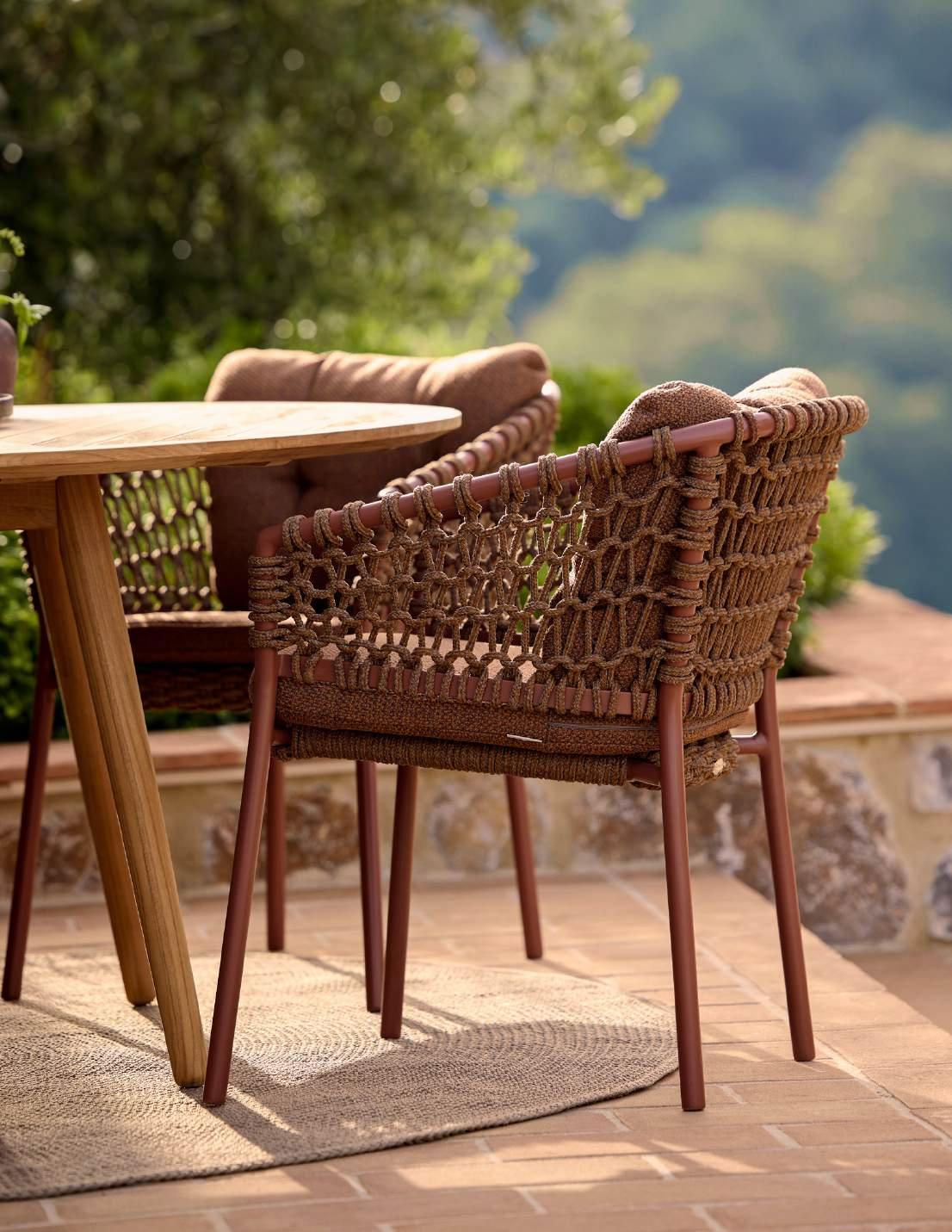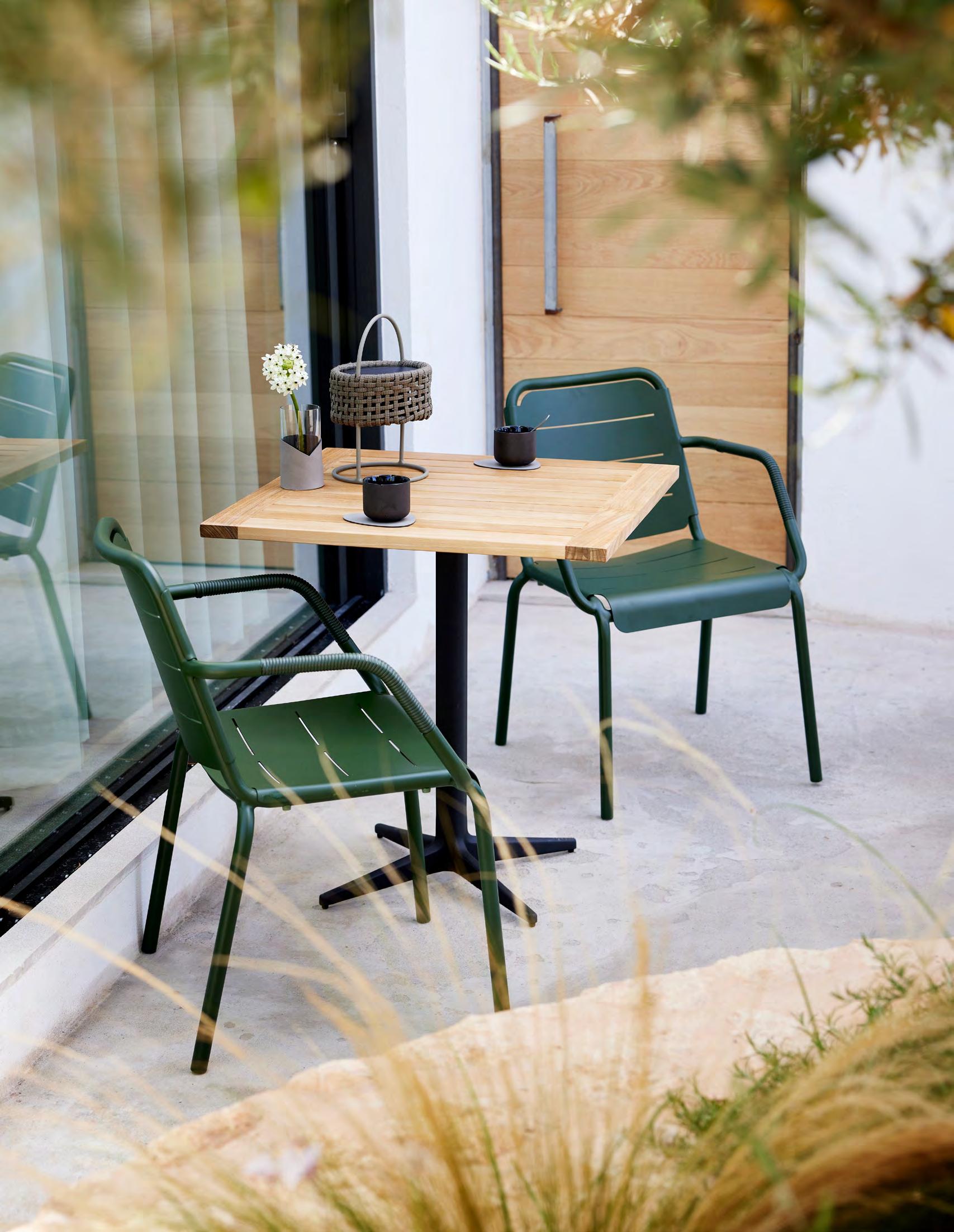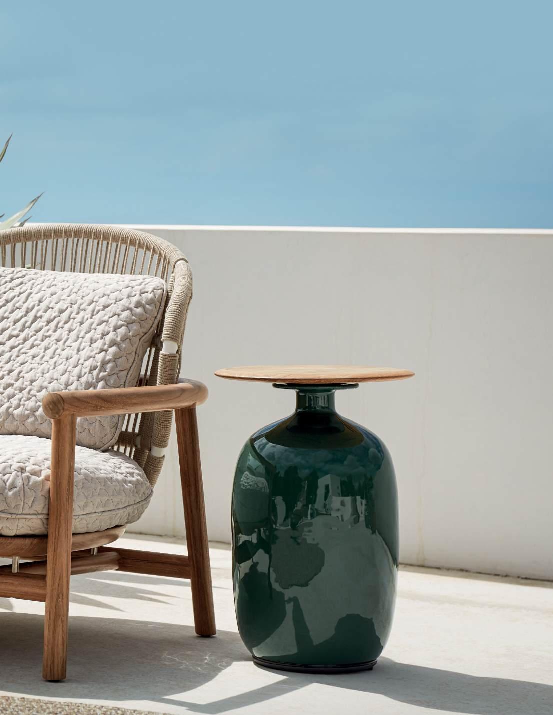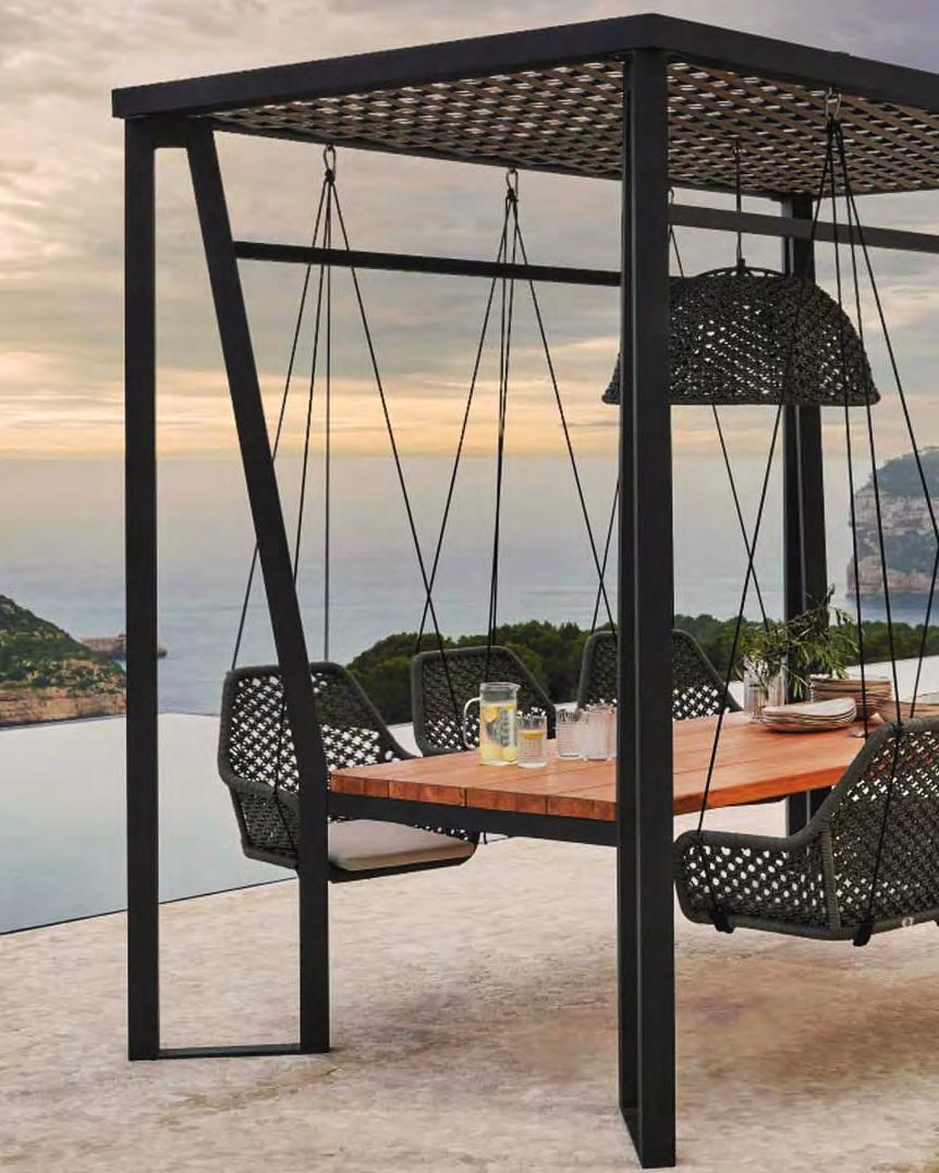 answers with naturally resilient bamboo and rust-resistant powder-coated aluminum. the humidity and the sun, it’s light in form and grounded in luxury.