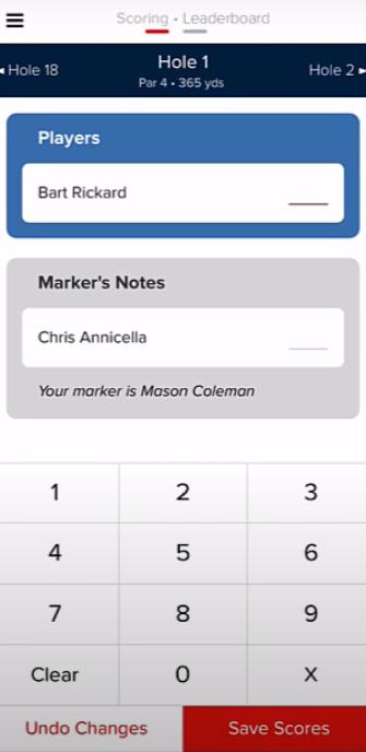 Step 4: As you play and complete each hole, enter the score for the person you are marking into the app, AS WELL AS, your own score in the marker’s note box. Don’t forget to click Save Score after entering each hole!