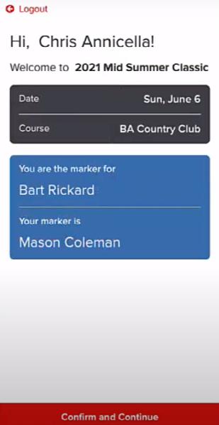Step 5: Certify your scores at the completion of the round. You will be shown two scorecards, one of the person you marked for and one of your own. Each scorecard will have the scores entered by the marker and entered by the player. Any discrepancies between the two will be highlighted.