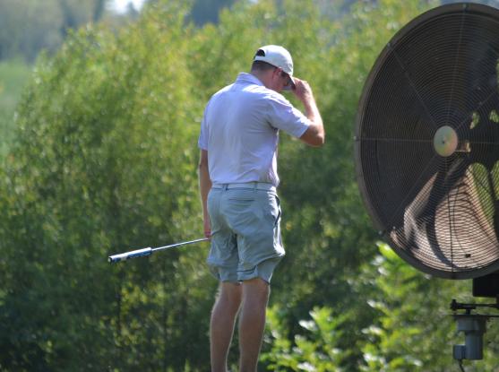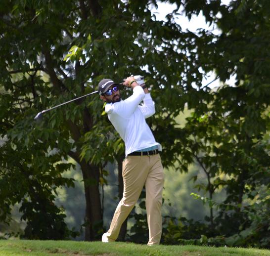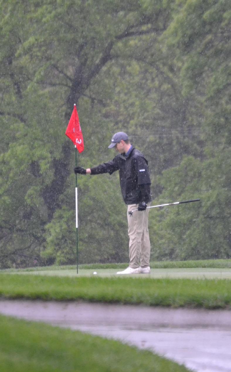 In the third to last pairing, David Strickland of Tapawingo National Golf Club sat four off the lead. Strickland started the round strong with a bogey-free front nine that included three birdies. Making the turn, he was suddenly one stroke back and making a statement to the rest of the field. The back nine was not as kind to Strickland, and a bogey on the last had him finish with a total of three-under (-3) par. Though the leader in the clubhouse at that time, there were still strong competitors on the course behind him. Brad Carpenter of Franklin County Country Club and Bubba Chapman of Bellerive Country Club were paired just behind Strickland. The two fought throughout the round to stay in it. Double bogey for both on Hole 17, dropped Carpenter and Chapman back with no room left to make it up.