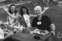 After several days of intense sessions during the 1991 Annual Meeting in San Francisco, front from left, Dave Schetter, past president Katharine Ku, Roger Ruggeri, back from left, Martin Rachmeler and Duke Leahey, relax during the closing dinner and reception.