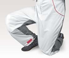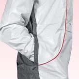 Machine washable. Made from 100% polyester calendered materials with antistatic built-in carbon fiber threads to dissipate electronic charges. Breathable full poly-cotton back.
