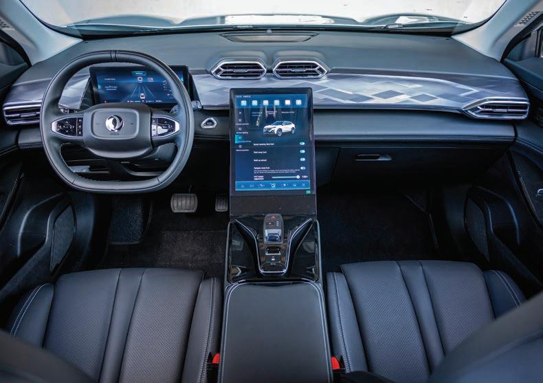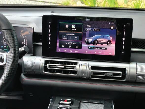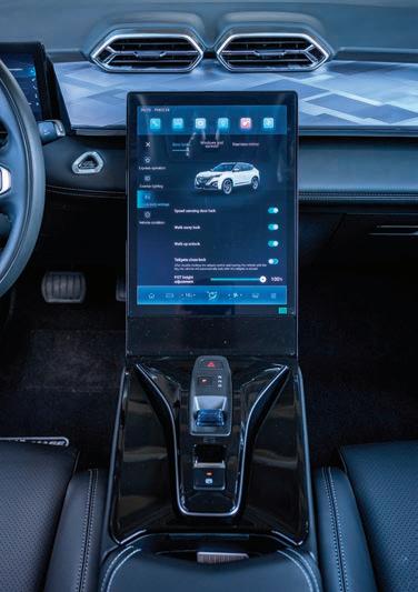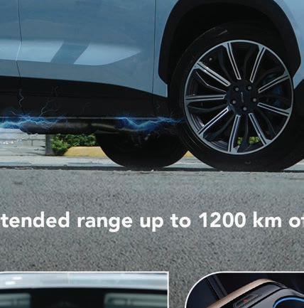Safety has also been a priority for GAC in the development of the Emkoo Hybrid. The vehicle is equipped with a suite of advanced safety features, including adaptive cruise control, blind-spot detection rear cross tra fic alert, forward collision warning, autonomous emergency braking, and lane-keeping assist. These systems are designed to enhance dri er confidence and reduce the risk of accidents, making the Emkoo not only a