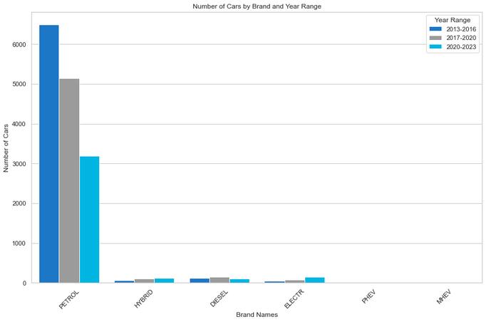 The data also shows the emergence of Plug-in Hybrid Electric Vehicles (PHEV) and Mild Hybrid Electric Vehicles (MHEV) in the later years, though their numbers remain relatively modest compared to other fuel types. Overall, this trend reflects a clear consumer shift towards cleaner and more sustainable fuel options, reflecting a growing awareness of environmental concerns and a willingness to adopt greener technologies in the automotive industry