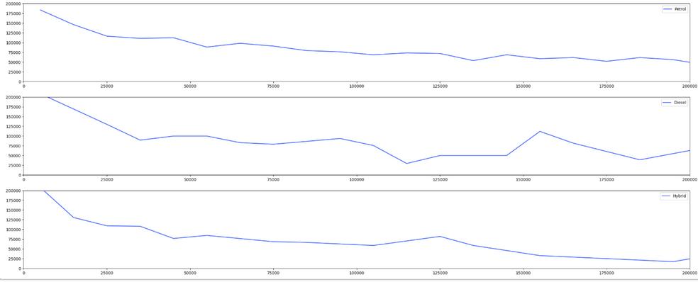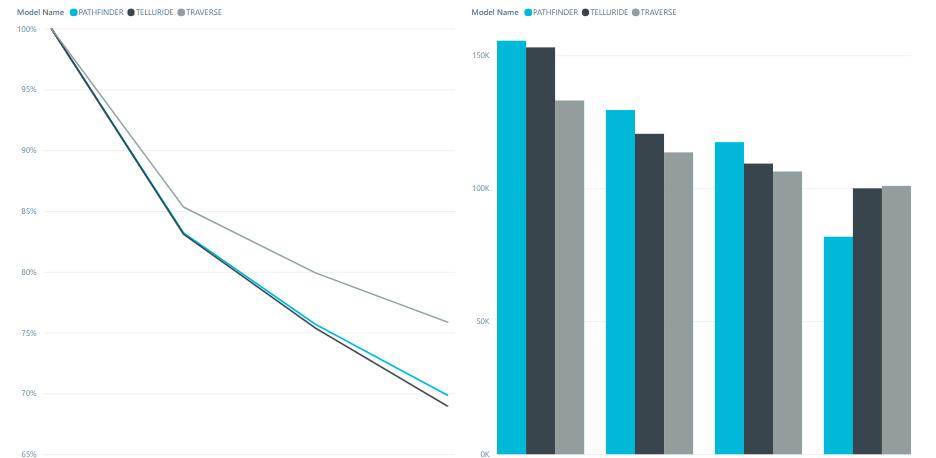 However, as time progresses, the depreciation rate gradually stabilizes for all three vehicles These trends align with typical patterns seen in the automotive industry, where new luxury SUVs experience significant depreciation in their initial years but subsequently stabilize to a more gradual decline in value