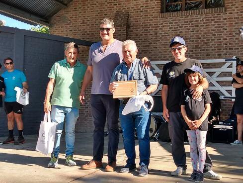 Pasture recibió un reconocimiento de manos del intendente de Brandsen, Fernando Raitelli, y luego recordó su compromiso con el automovilismo nacional y regional como promotor de los rallies