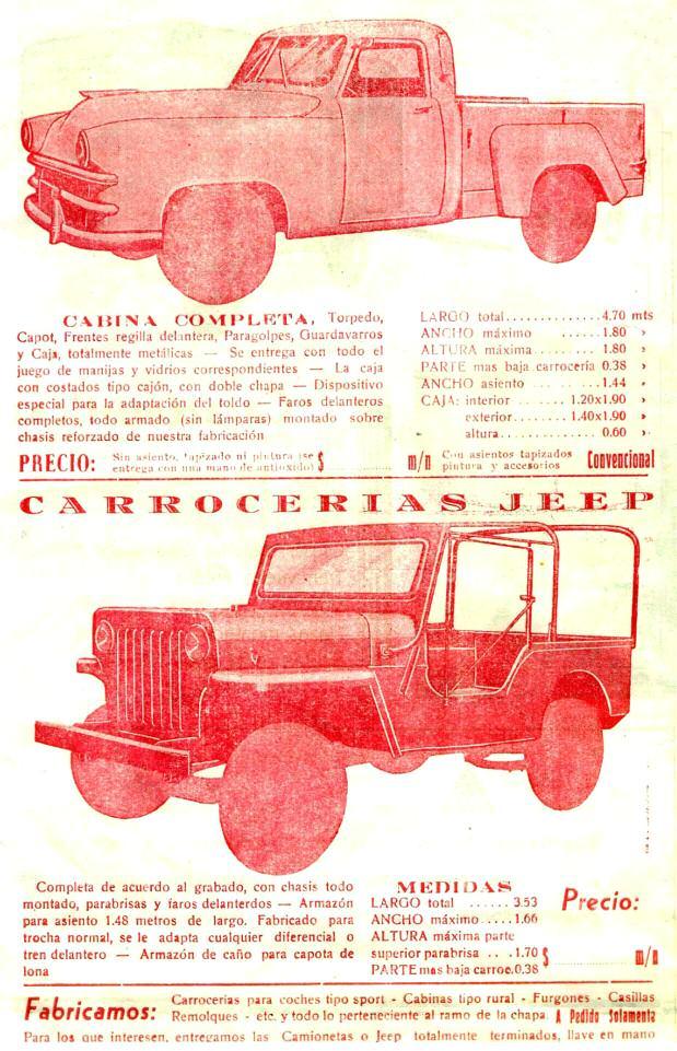Durante la década de 1950 salieron de la fábrica centenares de vehículos de producción artesanal de variadas configuraciones, como deportivos, camionetas, cabinas tipo rural, casillas y remolques, pero el decreto de 1959 del presidente Frondizi, que estimuló la radicación de automotrices extranjeras, fue un golpe muy duro.