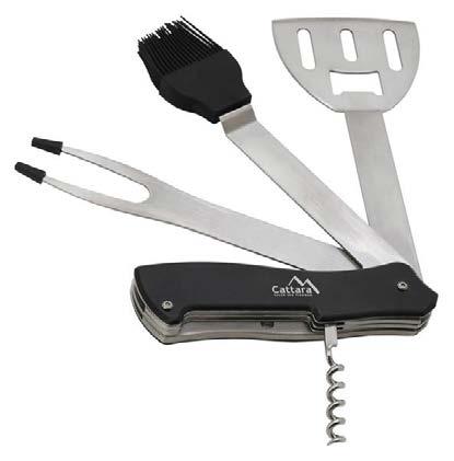 GRILOVACIE NÁRADIE 5v1 (DO 13081) vyrobené z kvalitnej ocele a má celkové rozmery 22,5 x 8,5 x 2,5 cm rukoväť má v úchopovej časti čierne lemovanie pre pohodlnejšie držanie rukoväť sa dá jednoducho rozdeliť na dve vrstvy
