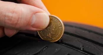en 20 kr. mønt. Hvis du kan læse Margrethe II i kanten af mønten, så er dækket slidt ned til 3 millimeter, og så skal du være opmærksom på, at dækket snart skal skiftes.