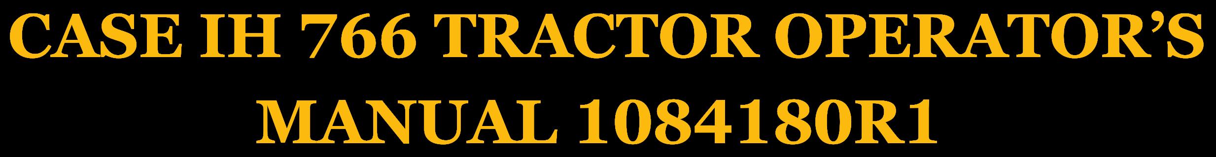 CASE IH 766 TRACTOR OPERATOR’S MANUAL 1084180R1