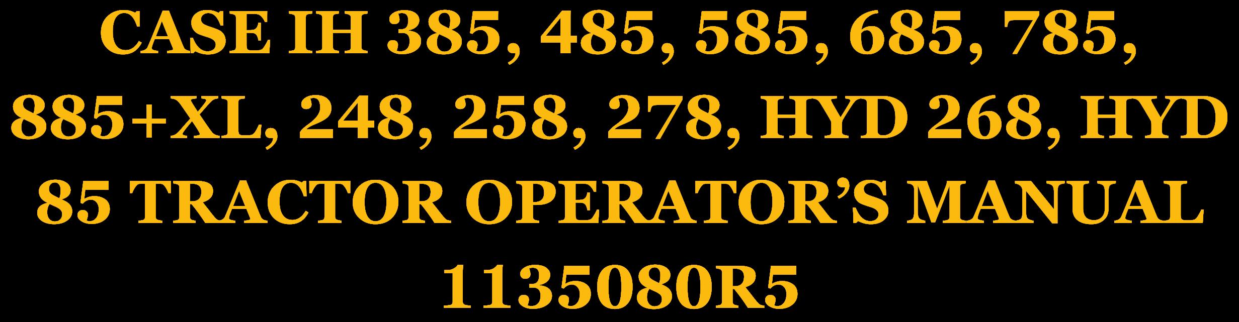CASE IH 385, 485, 585, 685, 785, 885+XL, 248, 258, 278, HYD 268, HYD 85 TRACTOR OPERATOR’S MANUAL 11