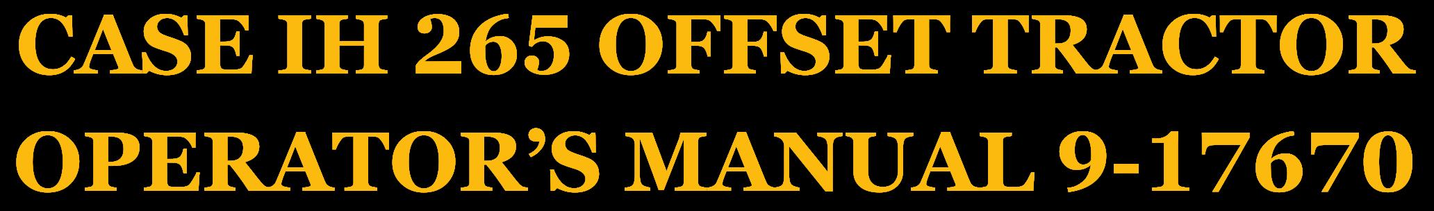 CASE IH 265 OFFSET TRACTOR OPERATOR’S MANUAL 9-17670