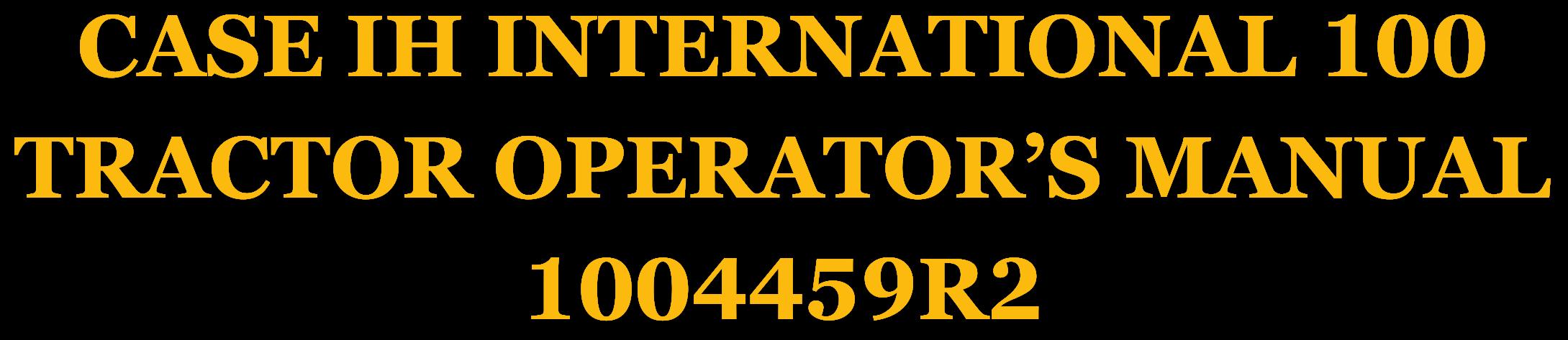 CASE IH INTERNATIONAL 100 TRACTOR OPERATOR’S MANUAL 1004459R2