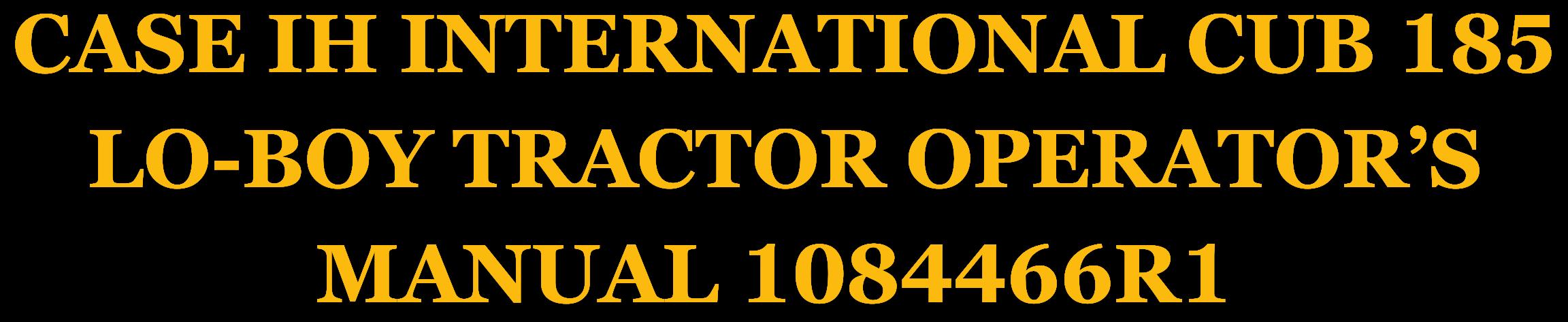 CASE IH INTERNATIONAL CUB 185 LO-BOY TRACTOR OPERATOR’S MANUAL 1084466R1