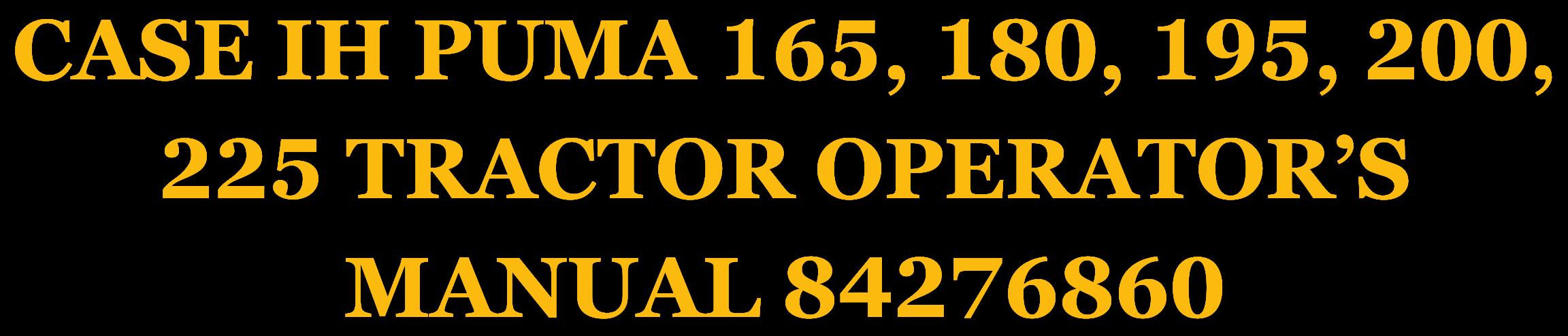 CASE IH PUMA 165, 180, 195, 200, 225 TRACTOR OPERATOR’S MANUAL 84276860