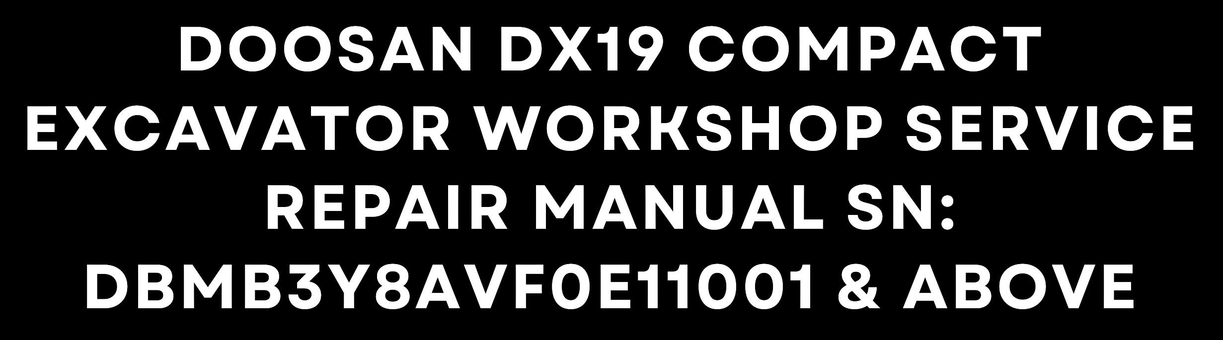 DOOSAN DX19 COMPACT EXCAVATOR WORKSHOP SERVICE REPAIR MANUAL SN: DBMB3Y8AVF0E11001 & ABOVE