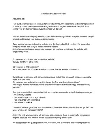 About seo service every webmaster on automotive guest post sites. You can use car guest post on relevant automotive website with quality and authority as backlink to link back to webmaster website to signal to the search engine for SEO.