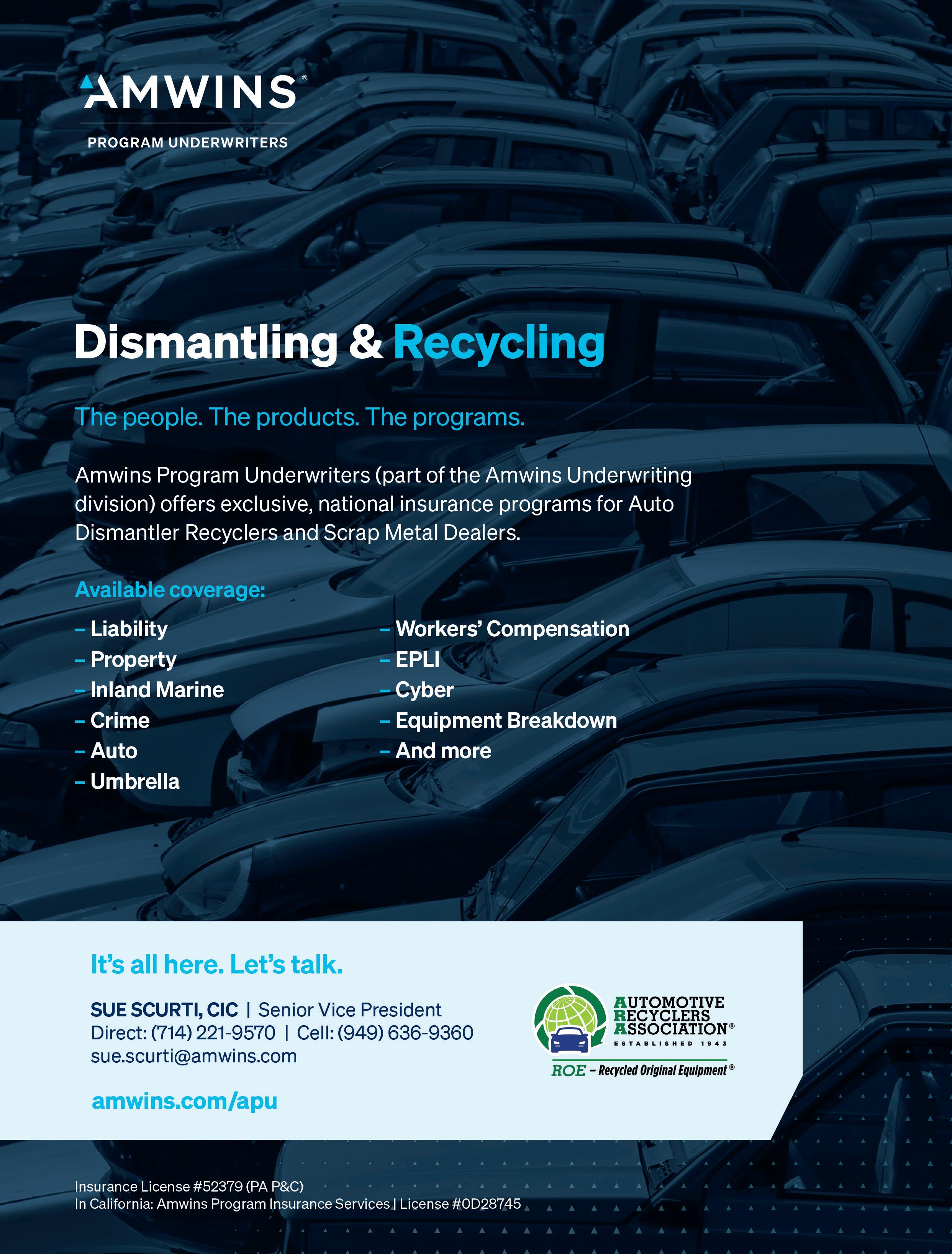© 2025 Automotive Recyclers Association. All rights reserved. This work is protected by copyright law and may not be reproduced, distributed, transmitted, displayed, published, or broadcast without the prior written permission of the Automotive Recyclers Association. Unauthorized use and/or duplication of this material without express and written permission from this site’s author and/or owner is strictly prohibited.