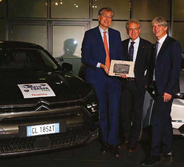 neLLa pagIna a deStra, daLL ’aLto, L ’aLfa romeo tonaLe vIncItrIce deL premIo uIga auto europa 2023”; IL premIo aSI InStant cLaSSIc conSegnato daL preSIdente aSI aLBerto Scuro a marco freSchI (uffIcIo Stampa cItroën) con IL preSIdente uIga gaetano ceSarano; La cItroën c5 x eLetta “InStant cLaSSIc” per aver Interpretato In chIave moderna I temI cLaSSIcI deL marchIo franceSe