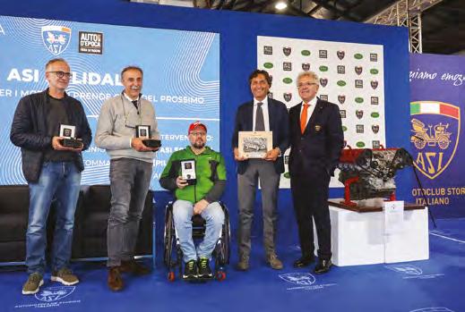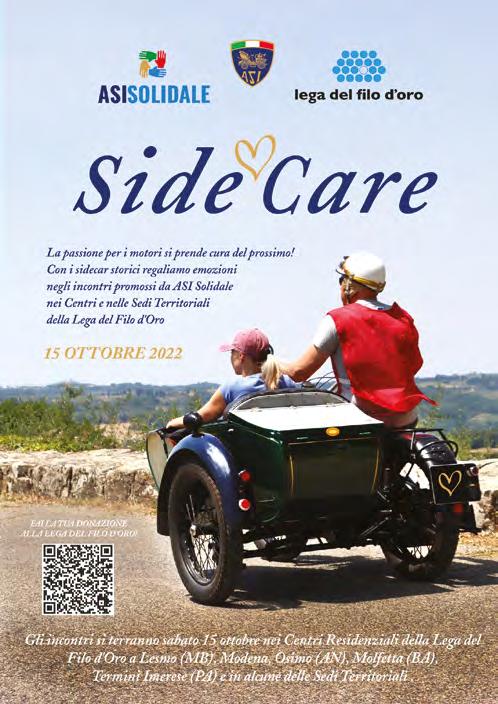 Gabriele Sclano, Riccardo Paglicci Reattelli ed ai fratelli Nicolò e Andrea Gregori. Infine, ampio spazio alle attività sociali coordinate da ASI Solidale, come il progetto “Classica e Accessibile” con la testimonianza di Tomaso Colini, pilota e istruttore FISAPS diversamente abile, e la più recente iniziativa “SideCare” in collaborazione con la Lega del Filo d’Oro, che ha sfruttato tutta la “potenza” dei motori storici per regalare emozioni a chi ne ha più bisogno. I sidecar storici, infatti, sono stati protagonisti nei Centri Residenziali di Osimo (AN), Lesmo (MB), Modena, Molfetta (BA) e Termini Imerese (PA), e nelle Sedi Territoriali di Roma, Montegrotto Terme (PD) e Pisa.