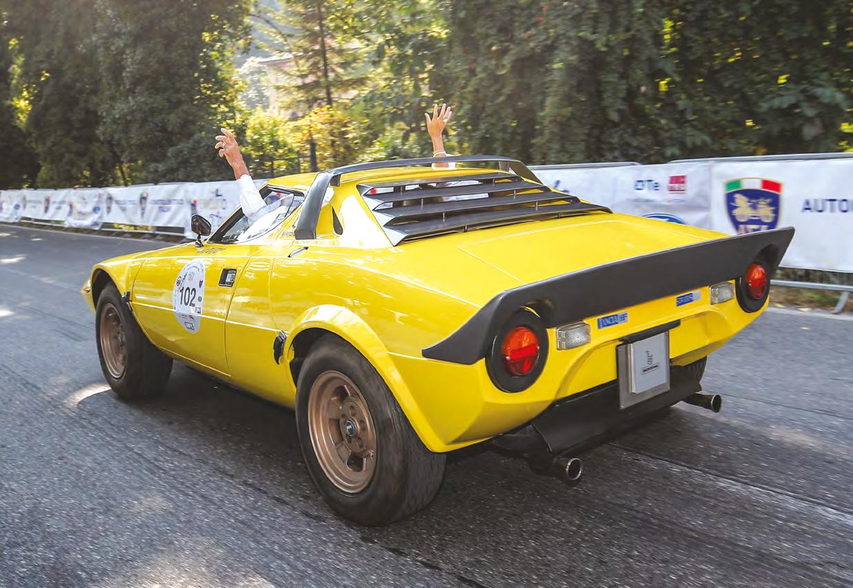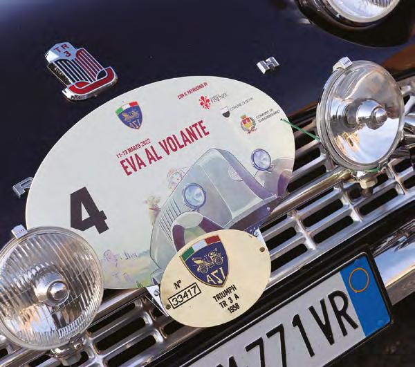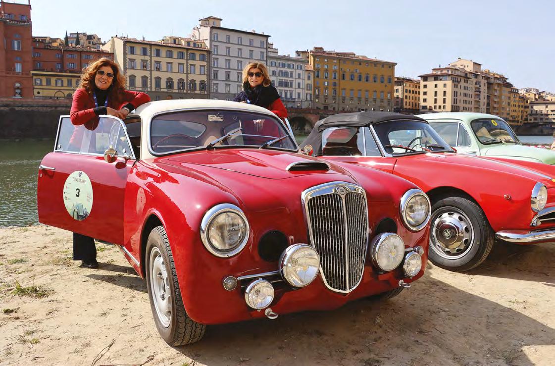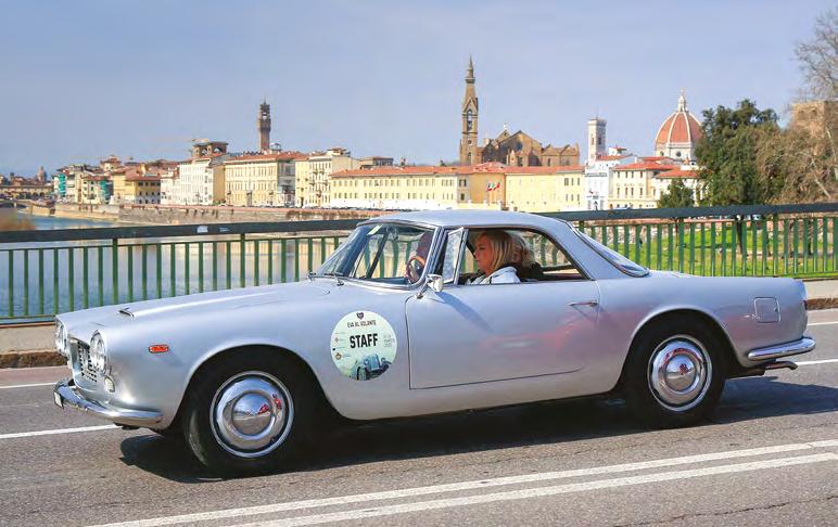 ruolo di navigatori. I paesaggi della Toscana hanno fatto da scenario alle auto che hanno affrontato un percorso di quasi 200 chilometri raggiungendo Firenze, durante la prima giornata, e quindi Siena, sempre partendo da San Gimignano. Per aggiungere un po’ di pepe e di sano spirito competitivo, sono state disputate due serie di prove a cronometro che hanno neLLa pagIna a SInIStra e quI dI fIanco, La nota gIornaLISta teLevISIva cLaudIa peronI aL vIa dI “eva aL voLante 2022” Su una LancIa fLamInIa tourIng deL 1963.