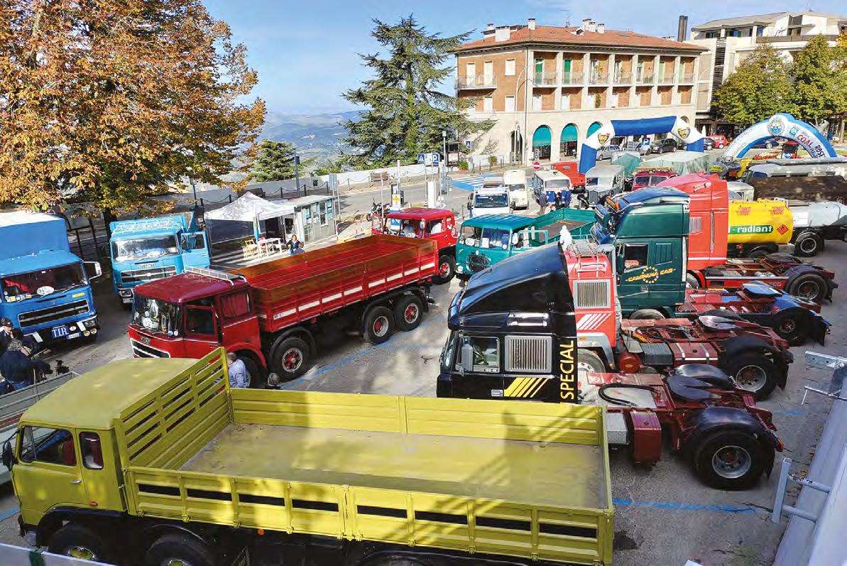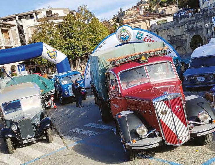 arterie nazionali dapprima con propulsione a vapore, poi con primordiali ma efficaci sistemi elettrici, quindi con motori endotermici fino alla definitiva affermazione del più efficiente ed economico Diesel. L’industria italiana si è sempre distinta in questo strategico settore, raggiungendo e superando nuovi traguardi tecnologici decennio dopo decennio. Con il “Transport Show”, l’Automotoclub Storico Italiano ha riportato alla ribalta un mondo composto da veicoli rigorosamente conservati o restaurati con gli stessi criteri utilizzati per le auto più prestigiose, tanto da rappresentare un “unicum” a livello internazionale. A Rimini sono arrivati 57 esemplari e in carovana hanno “conquistato” il Monte Titano per poi formare una colorata esposizione sul piazzale della stazione ferroviaria della Repubblica di San Marino grazie alla collaborazione del locale Automobile Club. I partecipanti hanno