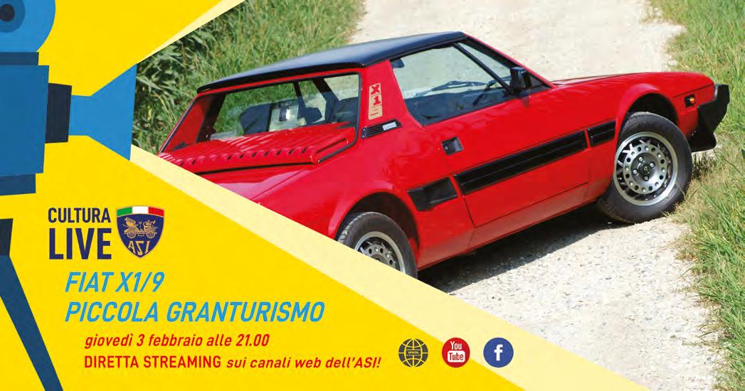 Le dirette streaming di “Cultura Live 2022” sono andate in onda dal 27 gennaio al 17 marzo, ogni giovedì sera alle ore 21.00. Sono intervenuti i componenti della Commissione Cultura ASI con ospiti di rilievo: prima puntata in sella alle “maximoto” italiane degli anni ’70, poi alla scoperta dei retroscena che hanno portato alla nascita della Fiat X1/9, quindi al Museo Alfa Romeo di Arese per festeggiare i 60 e i 50 anni di Giulia e Alfetta, la retrospettiva su Piero Taruffi, gli scooter oltre Vespa e Lambretta, gli approfondimenti storici sulla Itala e per finire le anticipazioni sul centenario dell’Aeronautica Militare Italiana che si festeggeranno nel 2023.