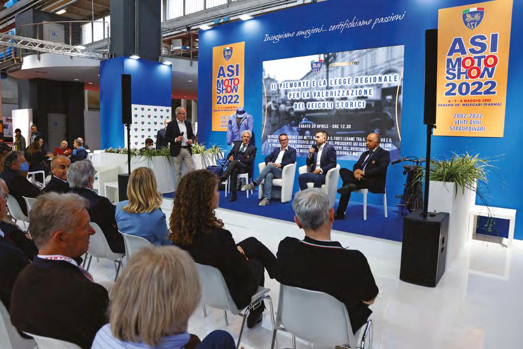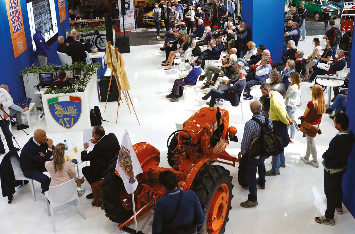 neLLa pagIna a deStra, daLL ’aLto In SenSo orarIo, IL taLk per ILLuStrare Le attIvItà 2022 promoSSe e coordInate da aSI SoLIdaLe; L ’Incontro con I rappreSentantI dI ancI, cIttà deI motorI, StatI generaLI deL patromonIo ItaLIano; IL nuovo LIBro “La prIma auto a cIrcoLare In ItaLIa”; La conSegna deLLe targhe “aSI muSeI” aLLe reaLtà meSSe In rete daLLa federazIone.