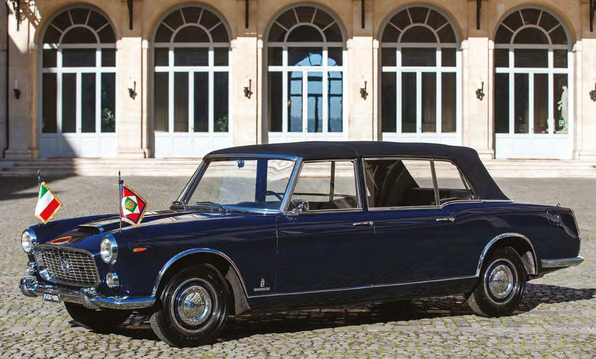 Museo Nazionale dell’Automobile di Torino. La Flaminia “335” è la più famosa, ma il lungo elenco delle auto presidenziali inizia con sei Fiat 2800 Cabriolet acquistate nel 1939. Tre di queste - Aceste (targa Roma 73183), Admeto (Roma 73184) e Alcinoo (Roma 73185) - sono rimaste in servizio fino all’inizio degli anni ’60 servendo De Nicola, Einaudi e da Gronchi. Tra il 1956 e il 1962 sono apparse la Lancia Aurelia B12 – Tortora (targata Roma 252481) – e due Flaminia berlina, Urania (Roma 292747) e Zodiaco (Roma 354128).
