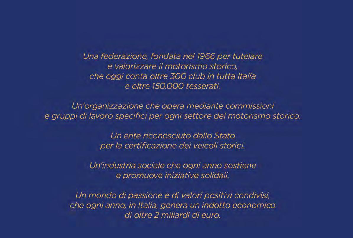 Il motorismo storico è un elemento chiave per lo sviluppo del Sistema Paese: questo è il “leit motiv” che sta guidando le azioni dell’Automotoclub Storico Italiano in un periodo che impone a tutti noi - appassionati e cittadini - una energica e positiva reazione volta a rimettere in moto questa bellissima macchina che si chiama Italia.