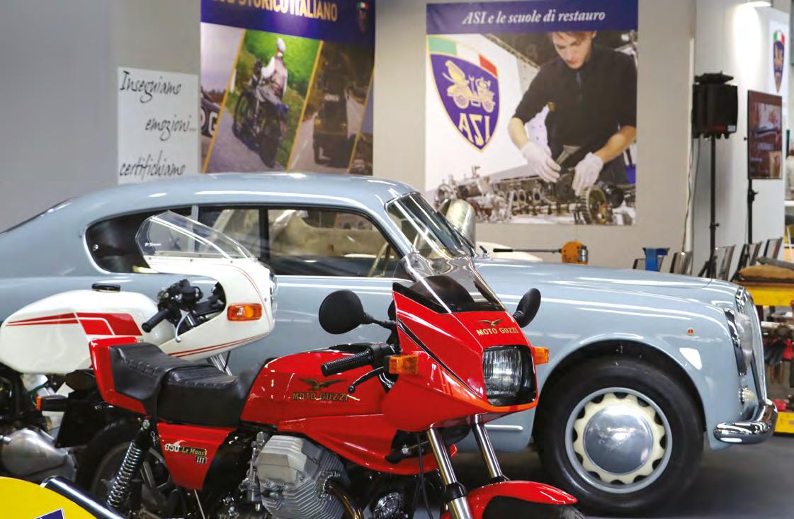 dovrebbero essere numericamente più del doppio del normale parco circolante per uguagliare le emissioni di CO prodotte quotidianamente da quest’ultimo. Domenica 20 novembre, infine, si è parlato della “Modernità del design Jaguar” con il Jaguar Club Italia insieme al designer Mike Robinson e allo storico dell’automobile Marco Makaus, poi dell’inesauribile confronto a due ruote tra i miti di Vespa e Lambretta (con Vittorio Tessera, fondatore del Museo dello Scooter, e Marco Caloi, presidente del Registro Italiano Vespa) e infine dei corsi di restauro promossi da ASI con il Politecnico del Commercio e del Turismo di Milano, che durante la rassegna milanese ha tenuto le lezioni “live” nel proprio stand.