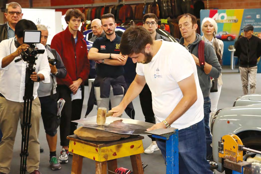gLI StudentI deI corSI dI reStauro promoSSI da aSI InSIeme aLLe unIverSItà dI modena, reggIo emILIa e ferrara hanno traScorSo due gIornate neLLo Stand deLLa federazIone a modena motor gaLLerY eSeguendo dImoStrazIonI pratIche deLLa BattItura deLLa LamIera.