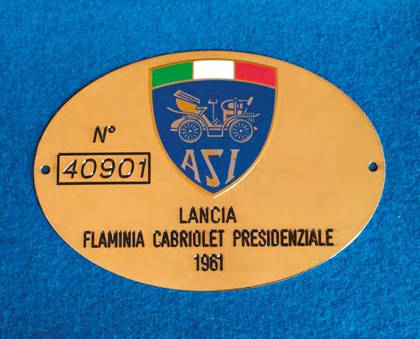 all’omologazione ASI e al rilascio della “Targa Oro”: simbolo italiano di eccellenza per il collezionismo mondiale. La Flaminia Presidenziale con carrozzeria “landaulet-cabriolet”