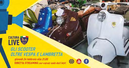 La Commissione Cultura dell’Automotoclub Storico Italiano ha il compito di progettare e attuare le attività volte a migliorare la conoscenza, la divulgazione e la valorizzazione della storia del motorismo, ed è per questo che anche nel 2022 è previsto un ricco palinsesto di “Cultura Live”, il format di informazione - lanciato nel 2021 durante il “lockdown” dovuto all’emergenza sanitaria – che diffonde cultura motoristica in diretta streaming sui canali web e social dell’ASI: il sito ufficiale asifed. it, il canale Youtube e la pagina Facebook.