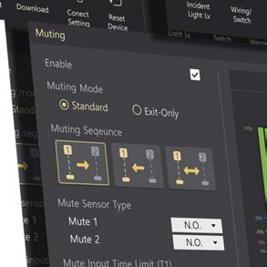 The SFL series light curtains can be expanded up to sets and beams with serial expansion cables. ultiple light curtains can be controlled using a single connection line, offering easier wiring, installation, and design planning.