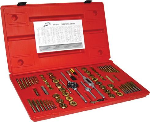 ATD-277 117-Pc. Tap & Die Set The ATD-277 Tap and Die Set includes everything in the ATD-276 Tap and Die Set; #3, #7, #9, #16, #19, #20, #21, #25, #29, #30, #36, #39, #43, letter B, letter F, letter H, letter I, letter J, letter O, letter Q, letter R, letter S, letter U, letter Z, 5/64”, 7/64”, 5/32”, 1/4”,