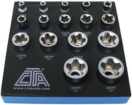 • Includes: 8mm x 6-point; 9mm x 6-point; 10mm x 6-point; 12mm x 6-point; 14mm x 12-point; 16mm x 6-point