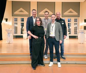 REP-TALK 1/25: Enzo Santarsiero (l.) diskutiert mit Dr. Alexander Grimm (Aspaara AG), Oliver Stegmann (Amag), Marcel Stettler (AXA) und Sascha Feller (Carrosserie Feller).