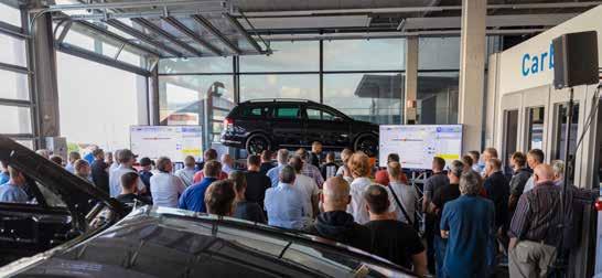 Patrick Balmer dans son exposé lors du «Celette Repair Show». Un mesurage initial permet ensuite de contrôler et de consigner la réparation. Cela permet également de dissiper les doutes quant à une réparation effectuée dans les règles de l’art. Dirk Zentgraf de Celette a ensuite démontré à quel point une mesure ou une réparation de la structure du véhicule pouvait être simple, fiable et rapide. Avec l’appareil de mesure Naja et le logiciel d’utilisation correspondant, un véhicule endommagé est mesuré en un clin d’œil. Le kit universel d’équerrage Cameleon permet en suite de redresser les déformations, de ramener la géométrie du véhicule à son état initial et de rétablir ainsi la sécurité totale des occupants. Le point fort: Cameleon et Naja peuvent être combinés avec n’importe quel banc d’alignement Celette, même avec d’anciens modèles. Pour le kit d’équerres de redressage modulaire, environ 19’000 jeux de données sont actuellement disponibles pour des modèles de véhicules et de nouveaux s’y ajoutent régulièrement. Avec le «Celette Repair Show», Carbesa n’a pas seulement proposé des pistes de réflexion passionnantes et une présentation informative des pro duits, mais a également prouvé une fois de plus sa compétence. C’est pourquoi la filiale de Glas Trösch AG propose de tels événements. «À l’avenir, la voiture deviendra encore plus complexe, c’est pourquoi les entreprises doivent investir et se former», sait Mathias Dufaux, vice président de Carbesa. «Pour cela, nous proposons diverses formations sur les produits et les applications».