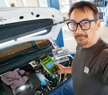 métier. Qu’il s’agisse de véhicules anciens ou neufs, de dommages de carrosserie, de remise en état de voitures anciennes ou d’entretien/ amélioration de véhicules, chaque mission est un défi qui exige la mise en œuvre correcte de la remise en état. Cette passion est son moteur et sa motivation, qu’il transmet égale ment à son équipe. Un autre aspect important est la formation continue régulière de ses spécialistes, par le biais de cours spécialisés organisés par ses fournisseurs, les fabricants OEM et l’association professionnel le. André Koch SA le soutient depuis ses débuts. Non seulement avec d’excellents produits, mais aussi avec des conseils compétents, des