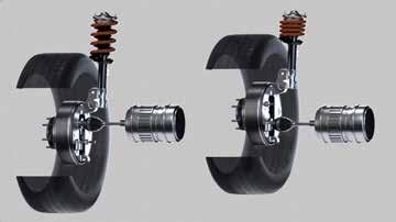 Hyundai hat ein Radantriebssystem mit radnaher Platzierung des Elektromotors und einem in die Radnabe integrierten Untersetzungsgetriebe, das auch noch eine andere Aufgabe übernimmt, vorgestellt.