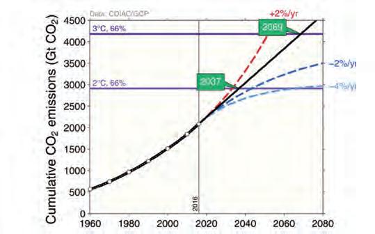 3. Eine Politik, die darauf fusst, für 2040 oder 2050 ambitionierte Ziele zu setzen, gibt damit noch keine Antwort auf die kumulativen THGEmissionen auf dem Weg dorthin. Wenn die CO2-Emissionen nicht jetzt reduziert werden, ist das Ziel nicht zu erreichen.»