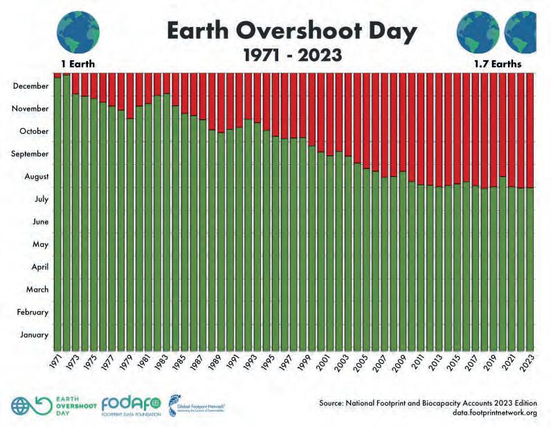 gefischt werden. Dadurch wird die Anzahl der Fische in den Gewässern kleiner und gewisse Arten sterben aus. Es werden auch mehr Bäume gefällt als nachwachsen. Dieses Jahr war der Erdüberlastungstag am 2. August. Das bedeutet, dass für die Lebensweise der irdischen Bevölkerung 1.75 Welten nötig wären. Die haben wir aber nicht zur Verfügung.