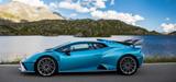 lässt sich wie anno dazumal beim Miura nach vorne öffnen. Auf dem Dach gibt's einen riesigen Schnorchel, hinter dem eine charakteristische Haifischflosse «thront», wie sie so keine andere Strassenversion des Huracán trägt. In Zusammenarbeit mit dem verstellbaren, riesigen Heckflügel sorgen diese Modifikationen für 420 kg Anpressdruck bei 280 km/h – das sind über 50 Prozent mehr im Vergleich zum ebenfalls