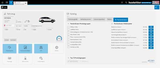 technischen Wartungsdaten, dem Kilometerstand sowie Original- und hostettler-Teiledaten liefert in Sekundenschnelle ein qualifiziertes Ergebnis. Auf der Übersicht stehen alle benötigten Ersatzteile, Betriebsstoffe und die Arbeitswerte für die ausgewählte Inspektion. Mit wenigen Klicks können weitere Arbeitspakete wie zum Beispiel ein Kupplungs- oder Bremsscheibenwechsel hinzugefügt werden. Kalkuliert wird anhand der Originaldaten und mit den von der Garage hinterlegten Stundenverrechnungssätzen. Die Kalkulation kann anschliessend gedruckt oder per E-Mail verschickt werden. Bei der Auftragserteilung ist eine direkte Bestellung der offerierten Teile möglich. Die erfassten Daten werden anschliessend direkt in der selbstlernenden Fahrzeugakte hinterlegt und erleichtern so die Kalkulation der nächsten Wartung.