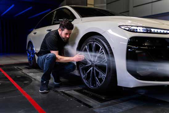 in der aerodynamischen Güte eines Autos. Wir haben Radien angebracht, Versteifungsrippen optimiert und Abrisskanten an neuralgischen Stellen beim A6 Sportback E-Tron. Der Heckdiffusor ist auch ein wichtiges Element für die Aerodynamik: Hier liegt die Strömung aufgrund des glatten Unterbodens direkt an und der Druckrückgewinn wirkt sich positiv auf den cW-Wert aus.» Ghelfi ergänzt: «Der Unterboden ist weitgehend geschlossen und wir haben diverse Bauteile feinoptimiert: dazu gehören speziell angepasste Radspoiler und 3D-Anlaufkörper vor den Vorderrädern, die jeweils für den Sportback und Avant individuell mittels CFD-Analysen optimiert sind und bei Windkanalmessungen den cW-Wert zwischen 0.002 und 0.009 verbessern.»