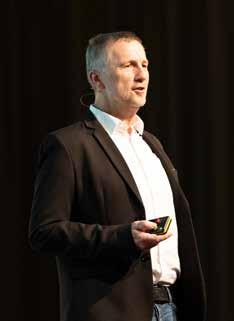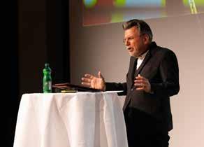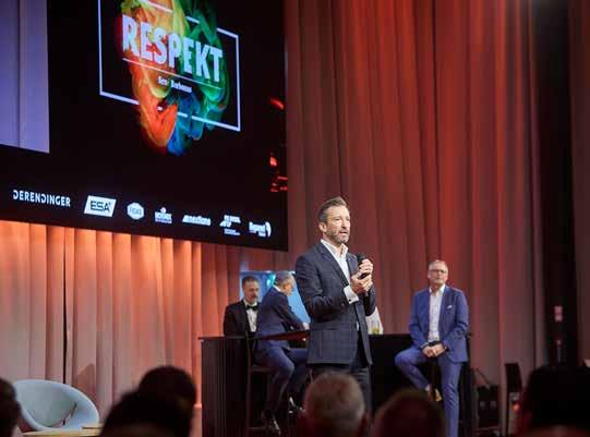 (ATW), Derendinger, GCS Schweiz AG, Riwax Chemie AG und Sortimo ihren Dank aus. Anschliessend bitten sie den Moderator des Abends auf die Bühne – Stephan Klapproth. Das ehemalige 10vor10-Aushängeschild moderiert den Branchenanlass bereits zum dritten Mal. Wie immer ist er ein Garant für kluge Gedanken und unterhaltsame Übergänge. Er beginnt mit einem Witz: Zwei Piloten betreten ein Flugzeug – einer mit einem Blindenhund, der andere mit einem Blindenstock. Die Passagiere tuscheln nervös, lachen verhalten, dann beschleicht sie eine seltsame Angst. Als das Flugzeug anrollt, gerät die Stimmung in Panik, einige schreien. Doch dann hebt die Maschine sanft ab und steigt sicher in die Wolken. Der eine Pilot wendet sich an den anderen: «Weisst du, Bob, irgendwann schreien sie zu spät – und dann war’s das für uns alle.» Ein brillanter Übergang