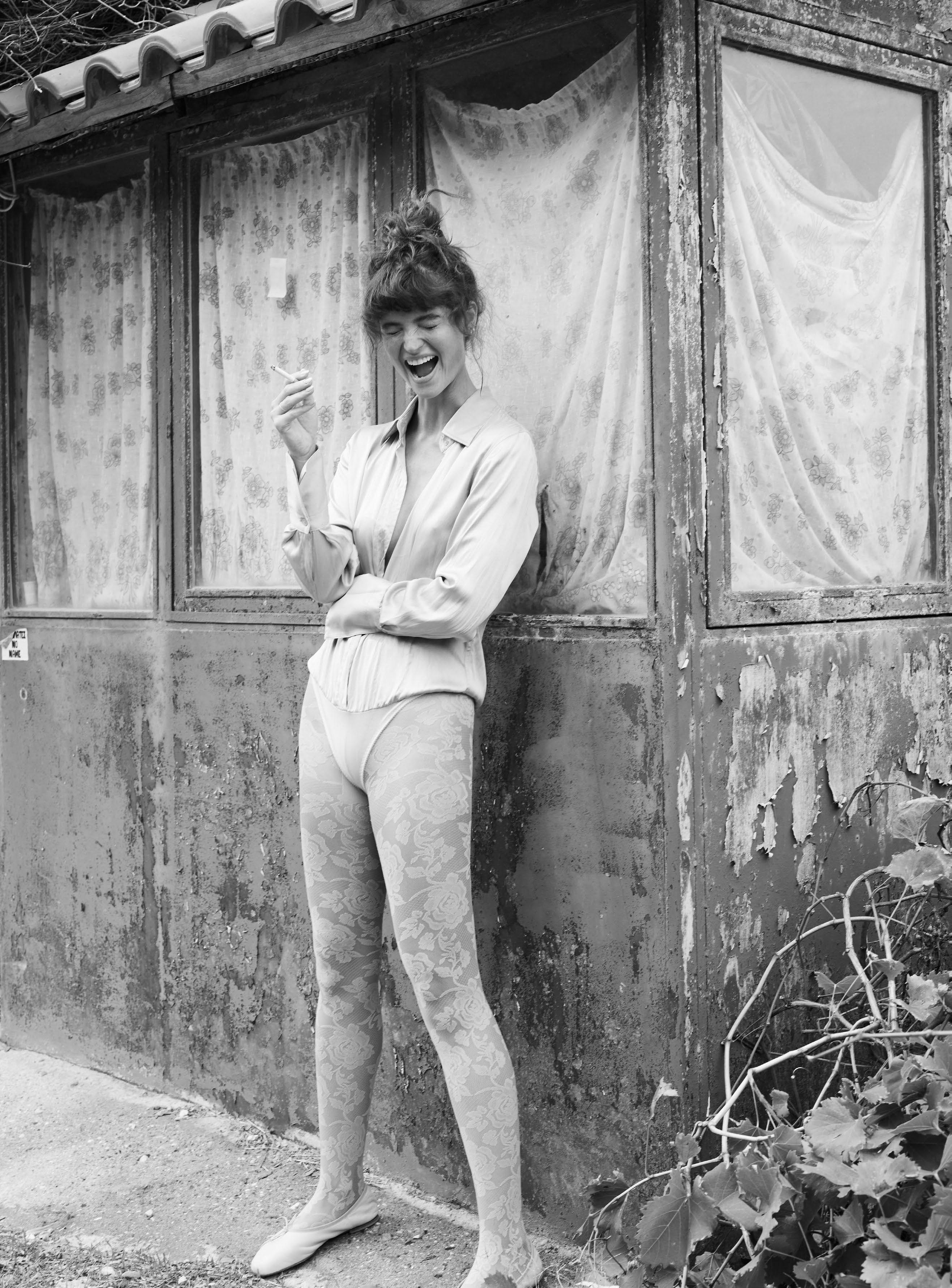 THIS PAGE Alegria wears long sleeve t-shirt & trousers Marie Lueder, shoes