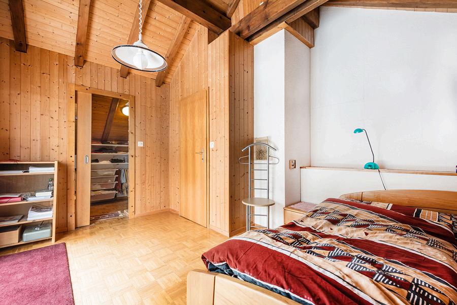 Hier erwartet Sie ein geräumiges Badezimmer mit Dusche und WC. Das grosse Schlafzimmer kann bei Bedarf unterteilt werden, um ein zusätzliches Zimmer zu schaffen. Ein weiteres Schlafzimmer mit eigener Ankleide rundet das Raumangebot auf dieser Etage ab.