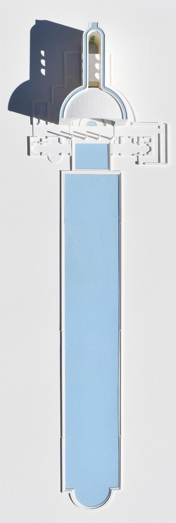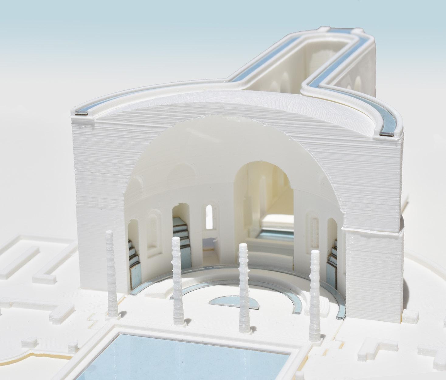 The large-scale model, 3D printed and assembled, conveys in great detail Carlo Scarpa’s BrionVega garden cemetery.
